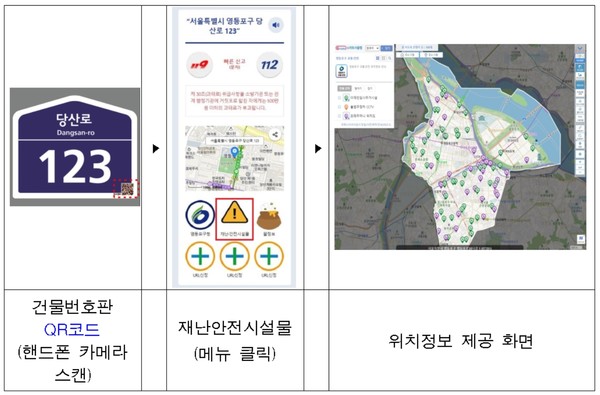 [한국지방정부신문=김지수 기자] 서울특별시 영등포구(구청장 최호권)가 재난으로부터 주민 피해를 최소화하고 신속하게 대응하기 위해, 서울시 최초로 건물번호판에 QR코드를 활용한 ‘재난·안전시설물 위치정보 제공 서비스’를 실시한다.