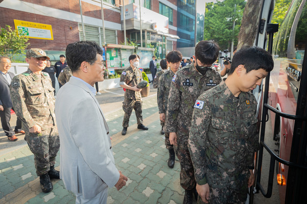 25일 새벽 목4동 주민센터 앞 탑승현장을 직접 찾은 이기재 양천구청장은 버스 내부 시설 및 탑승 절차 등을 점검하며, 이동과정에서 예비군들이 느끼는 불편함이 없는지 현장의 목소리를 꼼꼼히 경청했다.