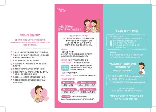 도봉구는 7월부터 출산 후 8주 이내 모유수유를 원하는 산모를 위해 ‘서울맘 찾아가는 행복수유 지원사업’을 시행한다고 밝혔다.
