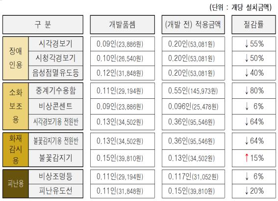 이번에 개발된 소방품셈은 건축물 내 화재를 정확하게 파악하고 장애인, 노약자 등 사회적 약자들의 신속한 대피를 돕는 시민 안전에 꼭 필요한 4개 분야 10개 품목이다.