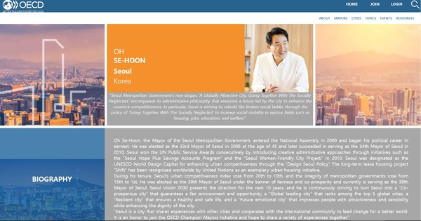 오세훈 시장은 서울시장 임기가 종료될 때까지 OECD 챔피언 시장으로서 포용적 성장을 위한 서울시의 비전을 국제사회와 함께 나누게 된다.