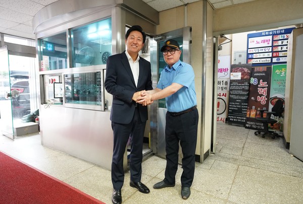 약정식에 앞서 오세훈 시장은 안심소득을 지원받고 있는 1단계 시범사업 참여 가구의 근무지를 방문하여 격려하고 그간의 소회를 들었다.