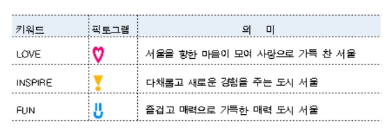 ‘Seoul(서울)’ 전면 배치...마음(하트), 경험(느낌표), 즐거움(스마일) ‘픽토그램’ 삽입