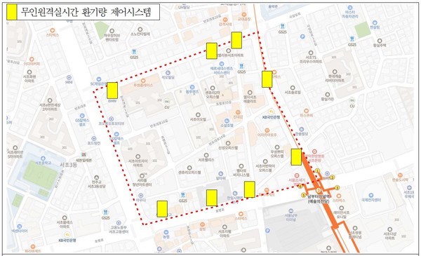 - 남부터미널역 6번 출구 인근 15만㎡ 면적의 총연장 4.6.km 일대, 악취저감장치 24개 설치