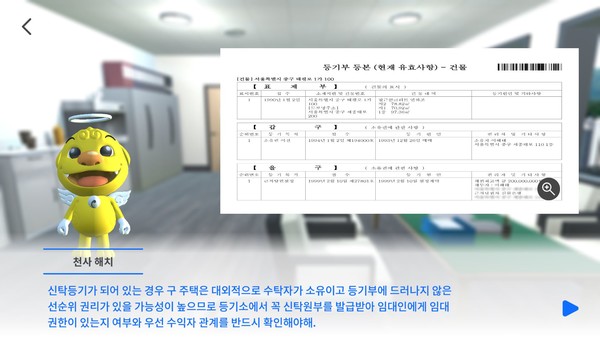 - 가상공간서 전·월세 부동산 계약 과정을 단계별로 체험하도록 구축