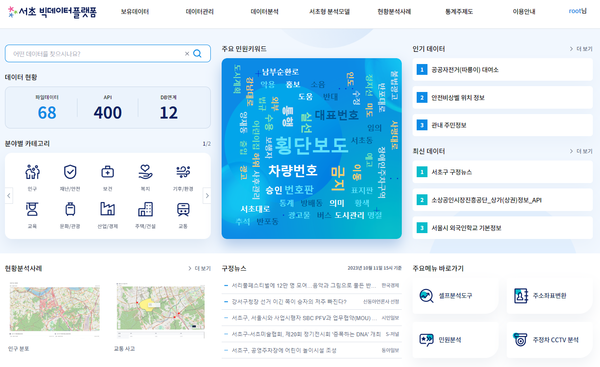 이와 관련 서울 서초구는 구민들이 다양한 행정 정보를 시각화해 보기 쉽게 제공하고, 부서 구분 없이 행정 데이터를 활용하는 ‘서초 빅데이터플랫폼’을 16일 선보였다.