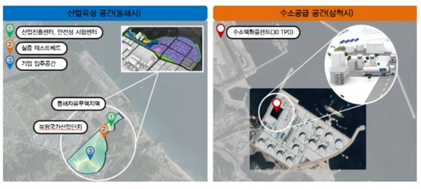 주요 사업은 산업육성 공간(동해 북평 제2일반산업단지)과 수소 공급 공간(삼척 LNG 인수기지 인근)으로 2개 지역으로 조성된다.