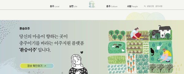 - 충주시-(재)충주중원문화재단 문화도시센터, 충주 유입 이주민과 예비 이주민 대상...충주 매력과 지역 정보 찾아보도록 홈페이지 오픈