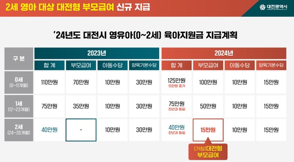 '2세 영아' 부모 대상, 가칭 '대전형 부모급여' 신설