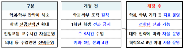 대학 내 벽 허물기 촉진...학과·학부 조직 원칙 폐지, 대학 자율 운영