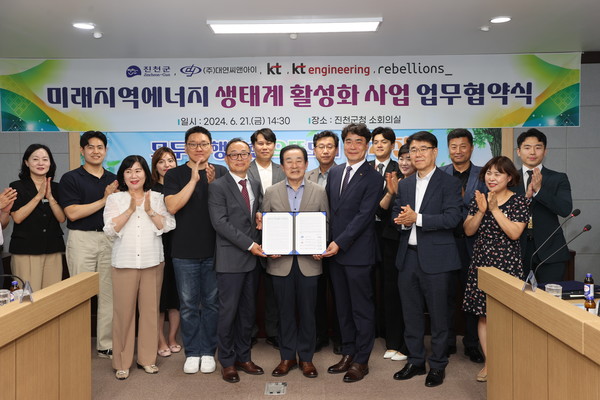 - 21일 진천군-㈜대연씨앤아이-㈜케이티-㈜케이티엔지니어링-리벨리온㈜, '미래 지역에너지 생태계 활성화 사업' MOU 체결