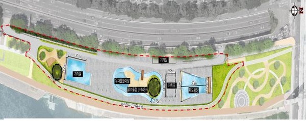 특히 국내 최초 하천 내 설치되는 파도풀(A=600㎡)은 최대파고 1.2m까지 파도를 만들 수 있어 짜릿한 스릴을 느낄 수 있고, 유아를 동반한 가족 단위 이용객들이 물놀이를 부담 없이 즐길 수 있도록 유수풀(A=517㎡), 가족풀(A=458㎡), 어린이 물놀이기구 7종 등이 설치됐다.