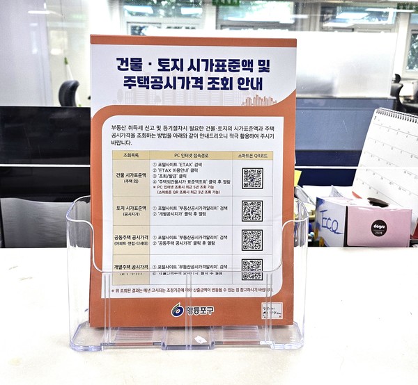 [한국지방정부신문=김미숙 기자] 서울 영등포구(구청장 최호권)가 구민들이 부동산 가격을 쉽게 확인할 수 있도록 전국 최초로 QR코드 안내문을 제작해, 정보 취약 계층의 사각지대를 방지하고 구민 편의와 민원 만족도 제고에 나선다.