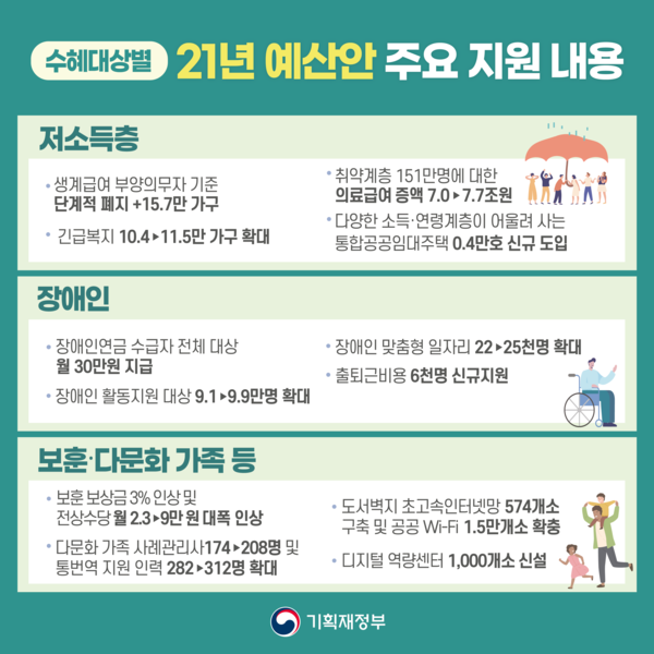 보건·복지·고용 199조9천억 전체의 36% 육박, 국방예산 52조9천억...한국판 뉴딜사업 21조3천억 배정