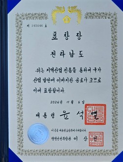 [한국지방정부신문=조용원 기자] 전라남도(도지사 김영록)가 6일 강원도 춘천에서 열린 ‘2024년 대한민국 지방시대 엑스포’ 기념식에서 친환경농업 우수사례로 ‘지역산업 균형발전 유공’ 부문 평가에서 전국 1위를 차지해 대통령 표창을 수상했다. 이날 김영록 전남지사가 윤석열 대통령으로부터 직접 대통령 표창을 받았다.