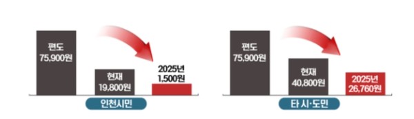 현재 일반인에게 월 이용 대중 교통비 20%, 청년(19~39세)에게 30%를 환급하고 있는 인천 패스에서, 내년에 첫째 아이를 출산하는 가정의 부모에게는 아이가 7세가 될 때까지 각각 50%, 둘째 아이 이상을 낳은 부모에게 각각 70%를 환급한다.