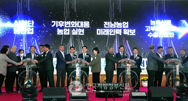 11일 농업인의 날 기념식서 비전 제시...디지털 대전환과 기후위기에 대응하는 인공지능(AI) 첨단 농산업 융복합지구 조성, 장성 국립아열대작물실증센터와 해남 농식품 기후변화대응센터, 나주 푸드테크 연구지원센터 구축