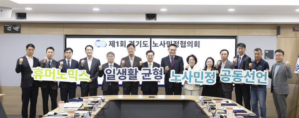 김동연 경기도지사는 15일 경기도청 서희홀에서 김연풍 한국노총 경기지역본부 의장, 김춘호 경기경영자총협회 회장, 노길준 경기지방노동위원회 위원장 등 노사민정협의회 위원 14명이 함께한 가운데 2024년 제1회 경기도 노사민정협의회를 열고 이런 내용을 담은 ‘공동선언’에 서명했다.