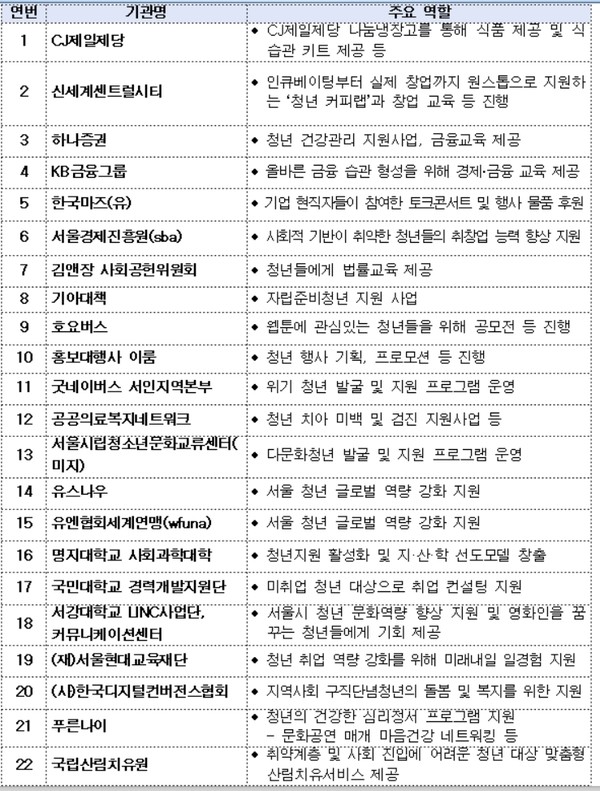 - 22개 민간기업, 공공에서 해결하기 어려운 청년의 욕구 해결하는 데 힘 보태