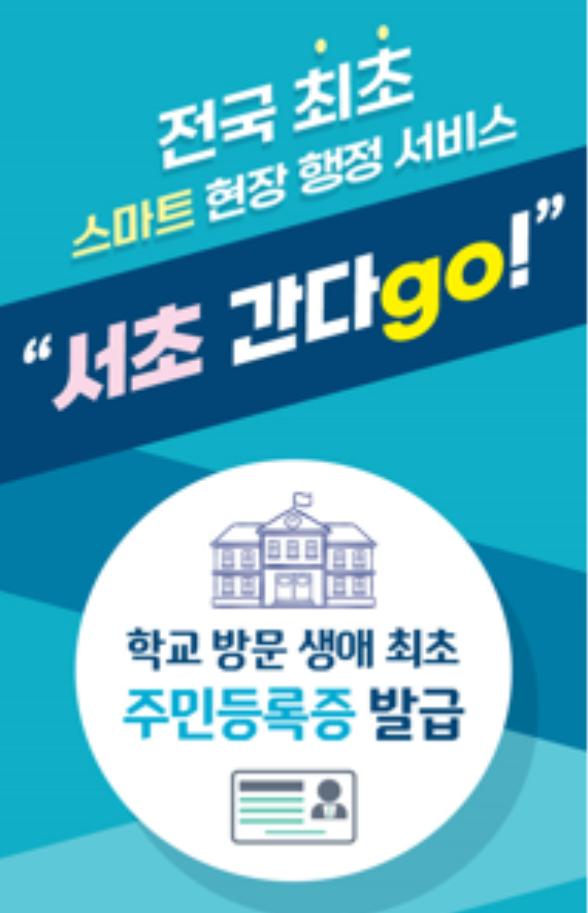 ‘서초 간다go!’는 생애 최초로 주민등록증을 발급받는 고등학교 2~3학년 학생을 대상으로, 희망하는 학교에 담당자가 직접 방문해 발급 신청을 처리해 주는 서비스다. 이를 통해 학생들은 학업 중에 동주민센터를 방문하는 번거로움 없이 자신의 첫 주민등록증을 신청할 수 있다.