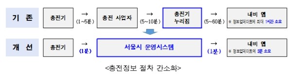 이를 위해 서울시는 올해 4월부터 시 재원이 투입된 충전기 약 1천 기의 제조사별 상이했던 고장 코드를 표준화하고 기존에 최대 1시간 이상 걸렸던 충전소 정보제공 통신주기를 1분 이내로 통일했다.
