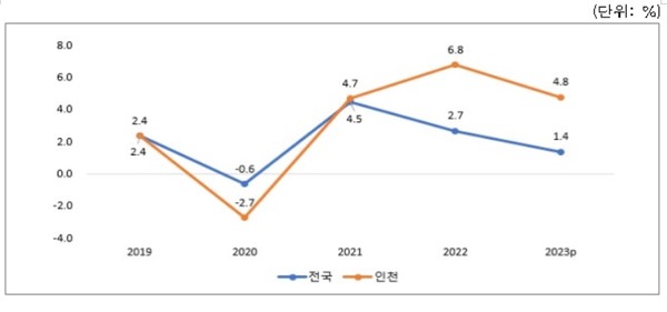 통계청이 12월 20일 발표한 ‘2023년 지역소득(잠정)’ 추계 결과에 따르면, 인천시는 실질 경제성장률 4.8%를 기록하며 전국에서 1위를 달성했다.