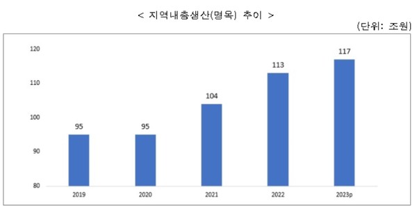 - 2023년 지역내총생산(GRDP)은 117조 원, 전년 대비 4조 원 증가