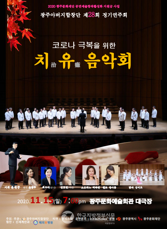 한편, IMF 외환위기를 당해 스러져가는 아버지들의 기를 살리자고 각 지역에서 아버지합창단 창단 붐이 일면서 광주에서도 1998년 3월 광주아버지합창단이 창단되어 올해로 22주년을 맞았지만, 코로나19 팬데믹이 전 세계를 휩쓸고 있는 최악의 2020년 상황에서 개최하는 이번 제28회 ‘코로나 극복 치유음악회’는 아버지들이 시민에게 보내는 또 하나의 ‘위로와 용기와 희망의 선율’이 될 것으로 보인다.