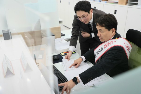 김진태 지사는 이날 소상공인 경영안정자금 보증 상담을 위해 찾아온 소상공인에게 보증 상담을 진행하며 이자 및 보증 수수료 지원, 앞으로 대출 절차와 필요한 서류 등을 꼼꼼히 설명했다.