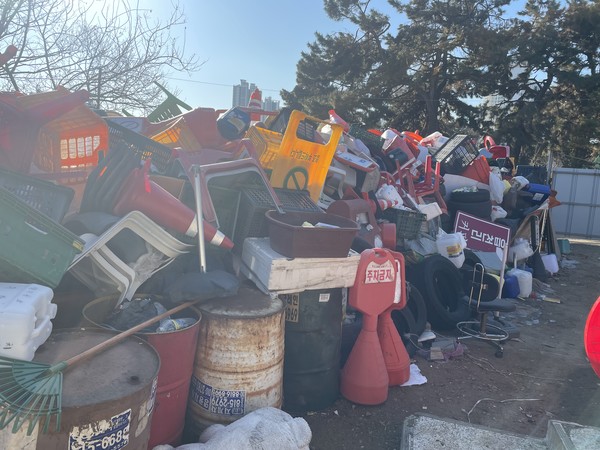 구에 따르면 도로법 위반 불법 노점과 적치물 단속을 통한 압수 물품 규모는 연간 약 15t으로, 이 가운데 10t 이상이 재활용이 가능한 폐합성수지이다. 주정차를 막기 위한 트래픽콘(라바콘), 플라스틱 가림판, 물통 등이 대부분이다.