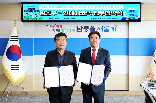 남동구는 최근 남동국가산업단지에 자리한 폐기물 처리 및 재생업체 ㈜현대에코텍과 압수 물품 재활용을 위한 업무 협약을 맺었다.