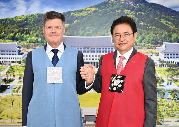 [한국지방정부신문=김지수 기자] 이철우 경북도지사가 마티아스 프랑케(Mathias Francke) 주한 칠레대사를 만나 “칠레는 한국과 최초로 FTA를 체결한 중남미 국가이자 APEC 창립 회원국으로, 경상북도와도 협력 가능성이 큰 중요한 파트너”라며 “이번 방문을 계기로 양 지역 간 우호 협력이 더욱 활발해지기를 기대한다”고 전했다.
