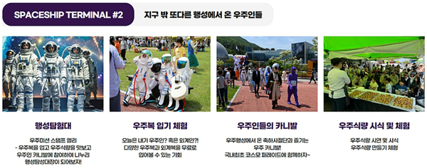 또한 참가자들이 우주복을 착용하고 퍼레이드에 참여하는 '우주인 카니발'이 열린다. 우주복 착용 체험과 함께 고흥 특산품이 제공되며 가족 단위 방문객들에게 큰 인기를 끌 것으로 예상된다.