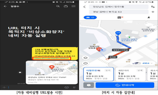 ‘스마트 구난시설 길안내 서비스’는 5월 12일부터 전면 시행되며, 기존 119 상황실에서 번거로운 주소 안내에 머물렀던 과정을 단축하고, 카카오맵 URL을 통해 단 한 번의 터치로 최단 경로 길안내를 실행한다.