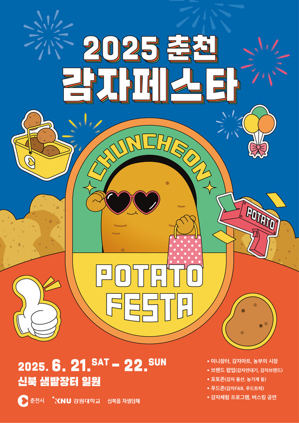 6월 21일과 22일 양일간 신북 샘밭장터 일원에서 열리는 ‘2025 춘천 감자 페스타’는 농산물 직거래 장터를 넘어 로컬 브랜드 팝업, 체험형 콘텐츠, 공연·먹거리까지 아우르는 종합 축제로 기획됐다.