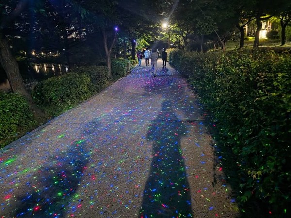 특히 아치조형물과 스트링라이트는 저수지 제방의 곡선을 따라 설치돼, 관객이 마치 물결 속을 걷는 듯한 몰입감을 선사한다.