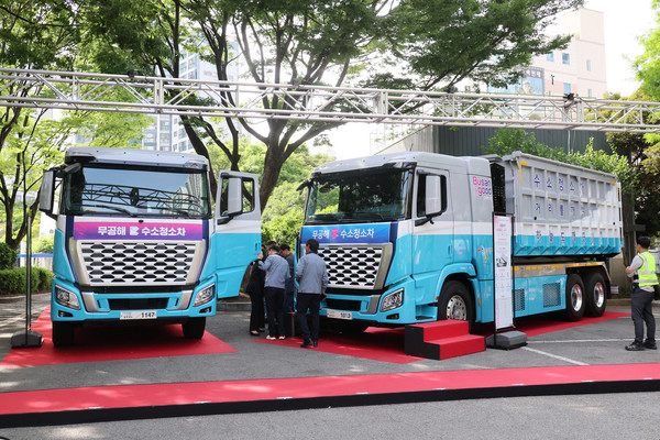 ‘압축식 진개차(9.3톤)’와 ‘압롤트럭(10톤)’ 수소청소차 첫 선