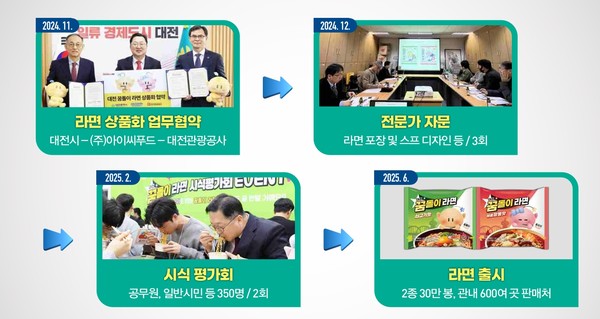꿈돌이 라면 개발은 지난해 11월 민·관 협력 라면 상품화 협약을 시작으로 전문가 자문회의, 디자인 개선, 시민 시식 평가회를 거쳐 완성되었다.
