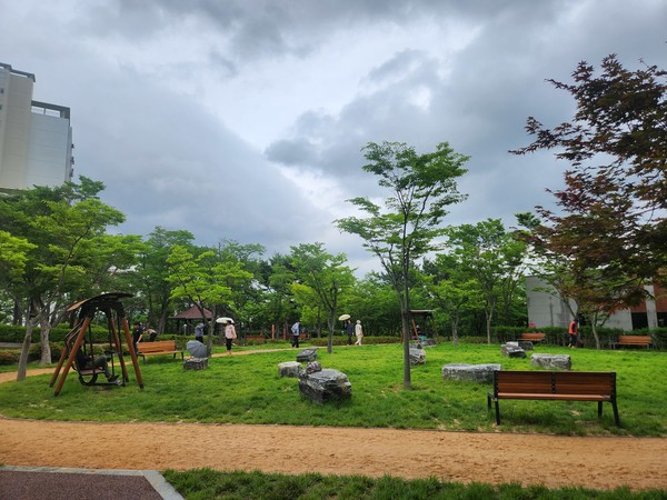 문수실버복지관 내 유휴공간에 조성된 전국 최초의 ‘맨발길 힐링놀이터’는 건식 맨발길과 노인 맞춤형 운동기구, 야외 쉼터를 통합해 신체 활동과 감각 자극, 정서적 회복을 동시에 추구하는 복합 힐링 공간이다.
