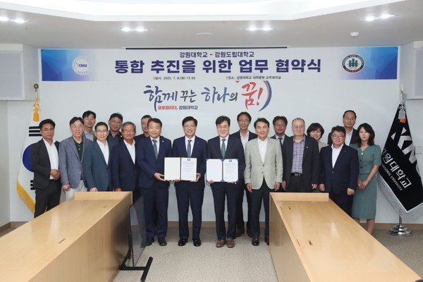 이와 관련해 7월 8일 오후 2시, 춘천 강원대학교 본관에서 김진태 강원특별자치도지사, 정재연 강원대 총장, 박덕영 강릉원주대 총장, 김광래 강원도립대 총장 등 주요 관계자가 모여 ‘통합 추진 업무협약(MOU)’에 서명했다.