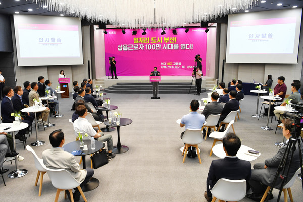 이와 관련해 부산시는 17일 부산상공회의소 2층 상의홀에서 '부산 상용근로자 100만 시대 달성'을 기념하고, 지역 기업과 고용 성과를 공유하기 위한 간담회를 개최했다.