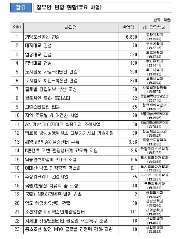 박형준 시장은 정부와의 협의를 통해 주요 사업이 상당 부분 반영됐다는 점을 강조하며, 남은 심사 과정에서도 부산에 필요한 사업이 더 반영되도록 최선을 다하겠다고 강조했다.